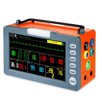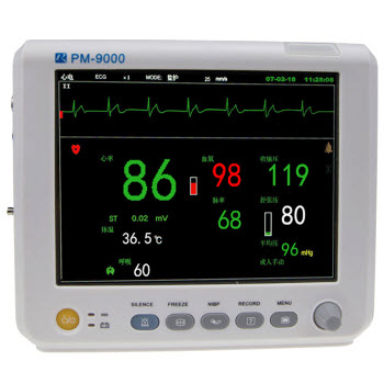 PM-9000八寸車載監護儀產品性能:1.全新高精度模塊,全新的數字血氧技術,測量更全面,更精準。2.高亮度高分辨8英寸彩色TFT液晶顯示,設計精巧,重量僅1.3KG。3.具有ST段自動檢測,心律失常...